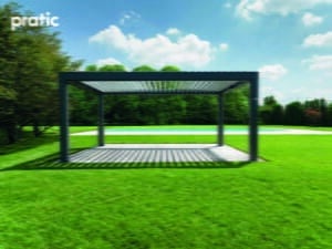 • Elegant, essential and clean, this bio-climatic pergola allows you to live outdoors all year round thanks to the blades able to rotate 140 degrees allowing natural air re-circulation and brightness adjustment.
